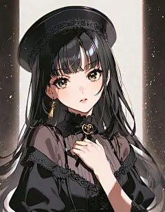 动漫2592x1600动漫动漫女孩黑帽子长长的头发肖像黑眼睛
