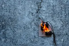 关于防火电线插头插座上的混凝土墙暴露混凝土背景与复制空间