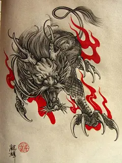 《线》纹身手稿 龙生九子般若凤凰仙鹤凶禽蛟蛇蟒雷神 图画册书籍-淘宝网