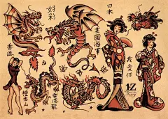 日本艺妓纹身手稿欣赏图5@北坤人素材
