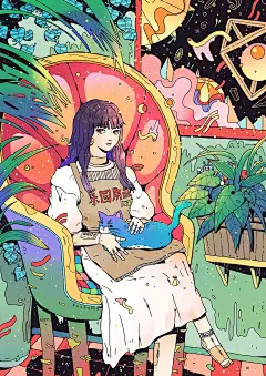 画师loika的插画作品 她擅长搭配细腻的色彩 巧妙的光影以抽象风格描绘人物和场景 在她笔下的世界,仿佛可以追着光梦游 #插画分享#