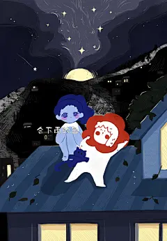 梦幻星月 治愈蓝色 插画师➭猫矮-Maoi