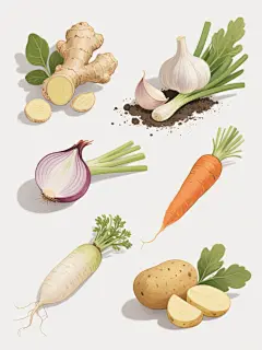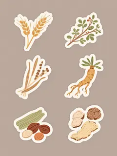 一组四个中国传统滋补食材的卡通手绘插画系列,保持可爱Q萌的风格,线条圆润流畅,色彩鲜亮明快,光影表现柔和,边缘有轻微模糊处理。第一个食材为棕色灵芝,菌盖呈螺旋状层层叠叠,边缘有黄色晕边,菌柄深褐色,置于纯色背景上;第二个食材为橙红色枸杞,颗粒饱满圆润,带有高光质感,置于另一不同色调的纯色背景上;第三个食材为黄色干桂圆,外壳有细微纹理,部分剥开露出棕褐色果肉,置于再一不同色调的纯色背景上;第四个食材为灰褐色香菇,菌盖厚实有自然褶皱,菌褶清晰可见,菌柄短粗,置于最后一个不同色调的纯色背景上。四个食材插画整体色