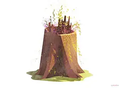 0603木头树桩木桩树木年轮枯木头树根手绘木头免抠素材