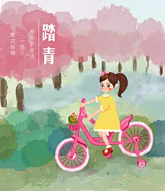 骑车春游小清新手绘插画高清模板免费下载-趣麦麦图