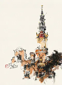 手绘自然流畅的微妙碰撞 . 澳洲建筑速写风景艺术家 . markpoulier
