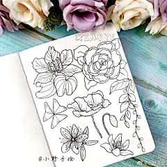 花卉手绘线稿图国画白描工笔画牡丹菊花月季茶花绘画临摹素材2-淘宝网