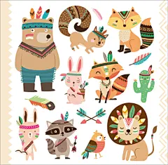 卡通森系原始人部落印第安人射箭打猎小动物矢量图ai格式素材0501-淘宝网