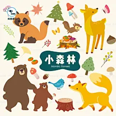 卡通可爱北欧森系小动物森林熊鹿松鼠树木插画AI广告海报设计素材-淘宝网