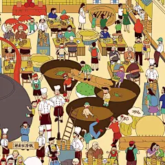美食广场插图UI设计作品扁平化插画首页素材资源模板下载