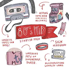 怀旧色彩音乐卡带磁带音符复古人物插画 人物插画 卡通男女