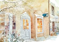 金泽MARIKO的水彩画。(金泽MARIKO于1954年生于长崎,45岁那年突然决定开始学水彩画。“在那之前,我从未想过要学画,只是呆呆地凝视着飞机云的时候,突然冒出了‘要不……学画吧’的念头。那时有一种强烈的感觉,好像一扇封印的门打开了。”两年后,金泽MARIKO获得“诗与童话“插画比赛佳作奖。)