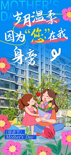 涂鸦风母亲节卡通拼贴城市房地产人物海报
