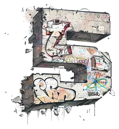 5号涂鸦艺术喷漆5号街头艺术-黑色背景上的彩色涂鸦风格5号