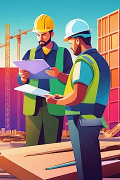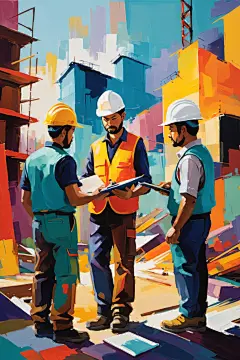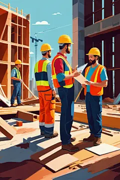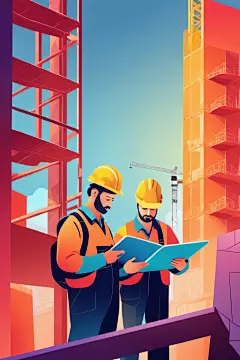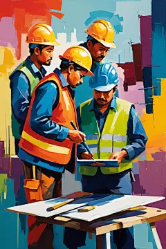 彩色工人涂鸦风格化插画