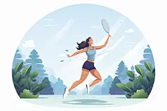 打羽毛球涂鸦风格篮球运动员插画