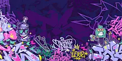 点击来源直接获取大图文件 |炫酷潮流抽象嘻哈都市街头艺术涂鸦风格矢量插画背景模板