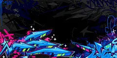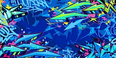 点击来源直接获取大图文件 |酷炫的深蓝色抽象城市街头艺术涂鸦风格矢量插画背景模板