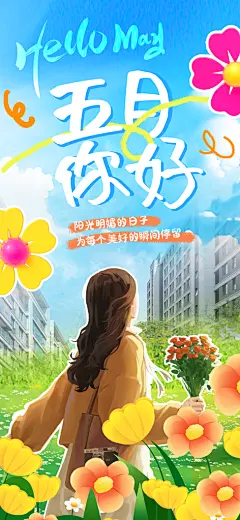 五月你好涂鸦风综艺卡通拼贴城市房地产海报
