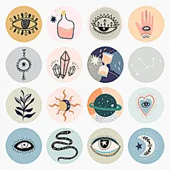 神秘占卜涂鸦风格矢量元素