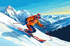 滑雪涂鸦风格运动插画