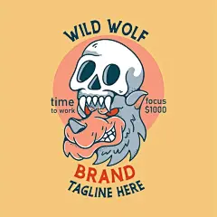 免费矢量狼愤怒与头骨插图角色复古设计 T 恤