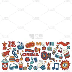 矢量模式与电影手绘图标涂鸦风格