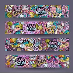 精品20款欧美商业插画涂鸦风格BANNER网页广告展板设计矢量素材-淘宝网