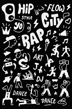 常规内容-文娱系列白色手绘风流行街舞元素组合