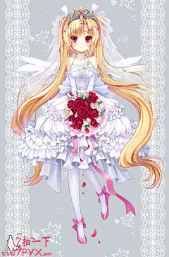 【纯洁的少女】婚纱特辑 : “婚纱”是新娘的象征。很多人都曾憧憬那洁白无瑕的婚纱吧。现在,说到婚纱通常想到的都是白色。但是这个白色婚纱这个印象真正人心,则是在1840年英国的维多利亚女王身穿纯白的婚纱举办婚礼之后。从此,纯白色的婚纱不仅成为了英国国内新娘们憧憬的礼服,欧洲和亚洲地区的新娘们也都非常憧憬。 这次就为大家送上角色们身穿洁白美丽的婚纱的插画作品特辑。
