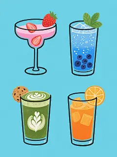 饮品系列卡通感红色高脚杯新风格饮料元素