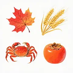 立秋通用金色落叶枫叶银杏叶植物贴纸元素素材