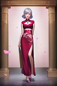 AI数字艺术国潮旗袍人物插画