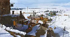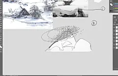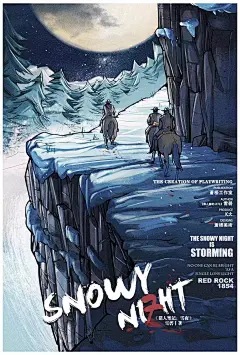 山水风雪插画 - 源文件下载【酷图网】山水风,雪景,插画,唯美,山水风雪图,