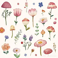 更多水彩蘑菇插画