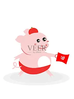 2019猪年卡通可爱Q版小猪插画新年新春海报贺卡模板矢量设计素材-淘宝网