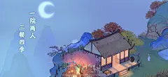 蓝色古风插画