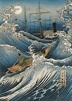 日本浮世绘海浪船