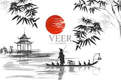 日本水墨插画