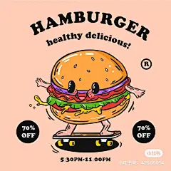 海报 美食 汉堡 插画 扁平化 漫画风