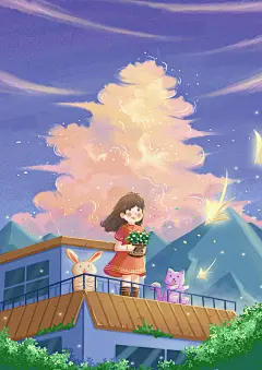 遨游天空 爱幻想爱的女孩黛儿,梦见自己在一艘漂在空中的大船上,船上有彩色的气球,有漂亮的蘑菇房子,船... 轻小说 插画 插画家园