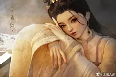 【插画师白岫古风少女手绘作品】 脸若银盘,眼似水杏;唇不点而红,眉不画而翠