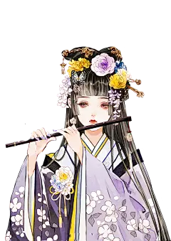 [动漫人物绘画]【花与姑娘】和服风格 来自微博:白缇
