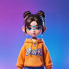 人物系列3D感赛博朋克短发少女背斜挎包元素