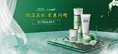 @佑佑佑小溪 采集 绿色系 春季春天 植物 绿植 化妆品 个护 无线大促海报kv 佰草集官方旗舰店