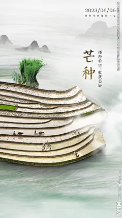 【佳图网】 海报 房地产 二十四节气 芒种 插秧 丰收 书本 创意