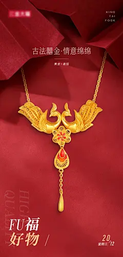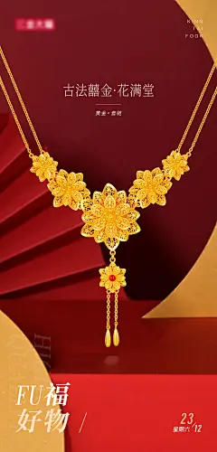 古法黄金海报国潮古韵金古法黄金吊坠灯片珠宝首饰婚庆饰品灯箱画