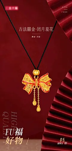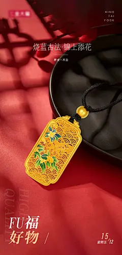 古法黄金吊坠古法金海报珠宝首饰灯箱画古法无事牌宫廷珠宝素材
