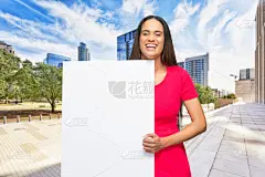 一个拿着一张白纸的男人。拿着一本小册子。关闭了。城市的背景