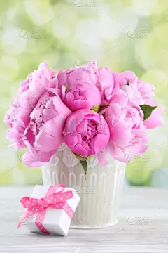 母亲节,情人节的背景设计概念,美丽的粉红色康乃馨花束在粉色的桌子上。